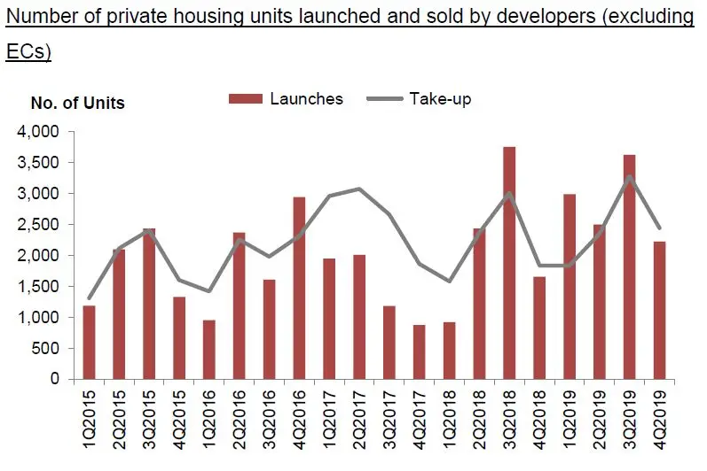 By Timothy Tay/ EdgeProp Singapore|January 23, 2020 2:23 PM SGT The URA has released its property market statistics for 4Q2019. It reported that the overall price index of private residential properties increased by 0.5% q-o-q, compared to the 1.3% increase in the previous quarter. For the whole of 2019, prices of private residential properties increased by 2.7%, compared to the 7.9% increase in 2018....