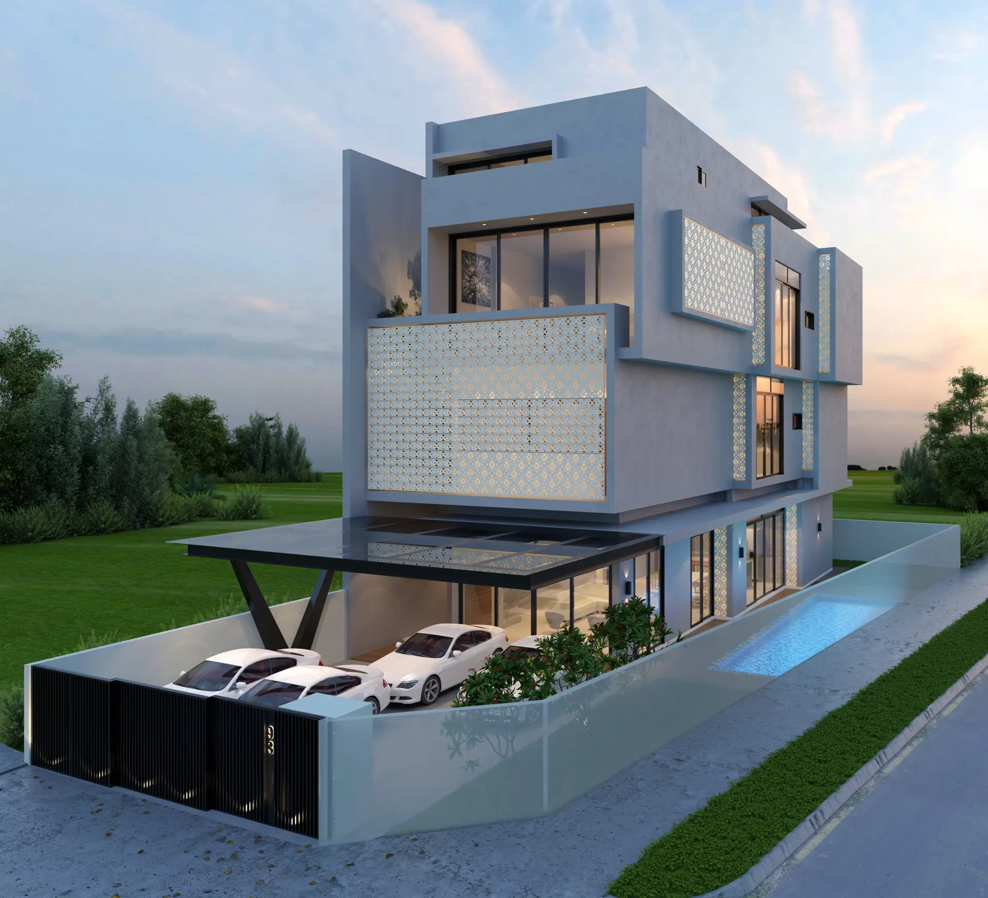 A 3 Storey Corner Terrace with an Attic, Pool & Lift