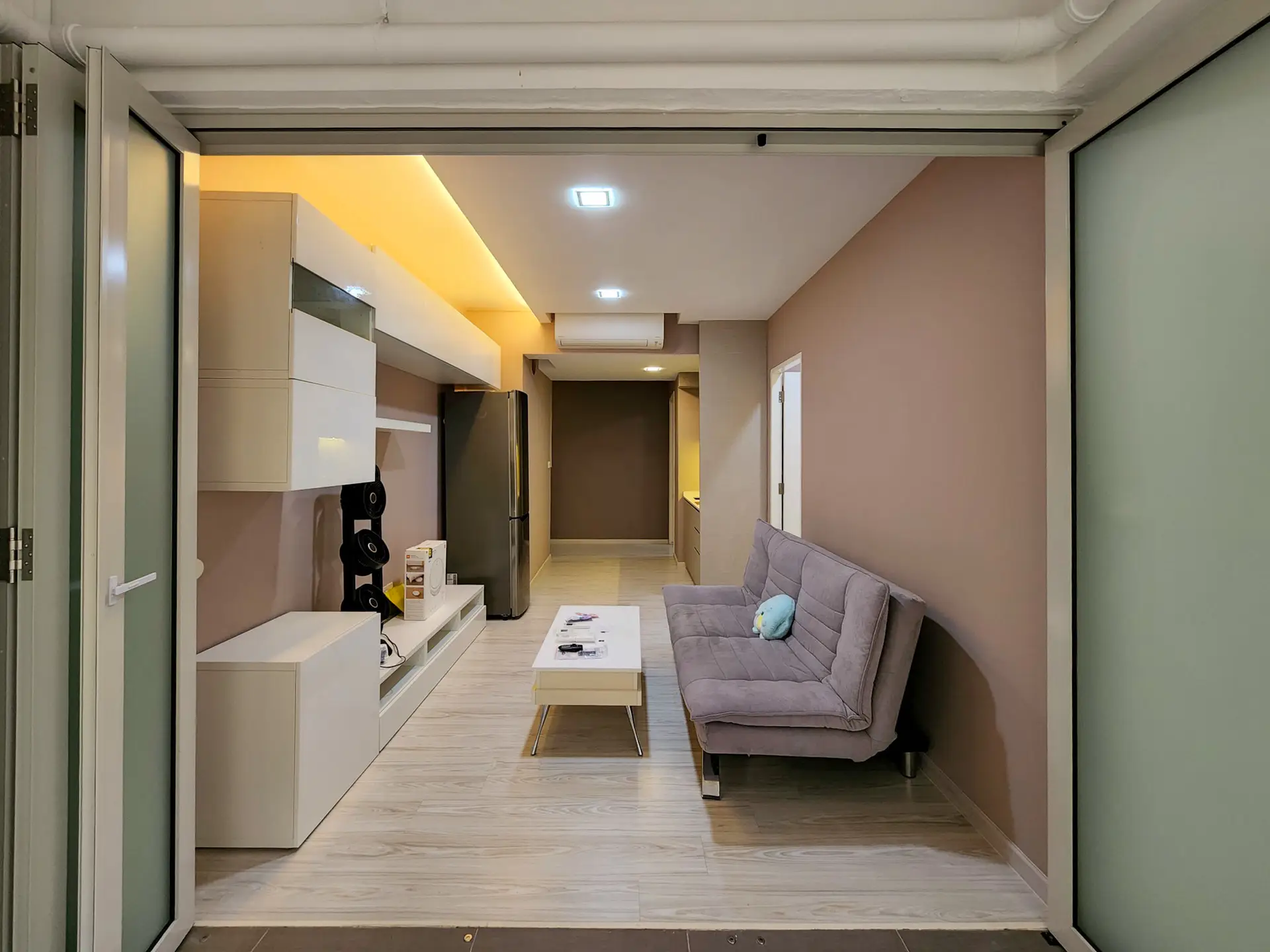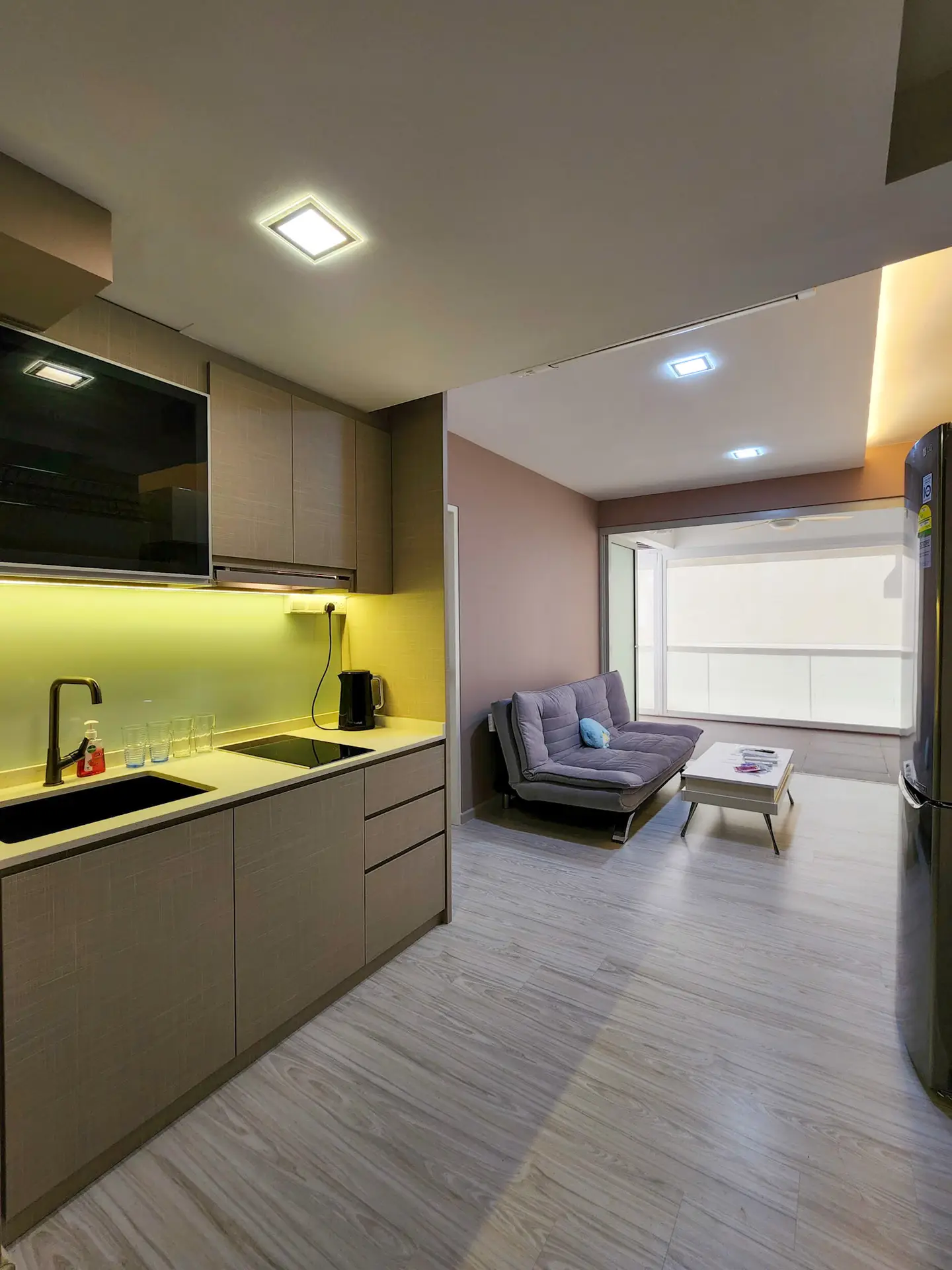 – 1 and only 1 unit in Parc Sophia with motorised electronic outdoor blinds covered to the edge of the patio + Installed Modern bifold Door between Living and patio area